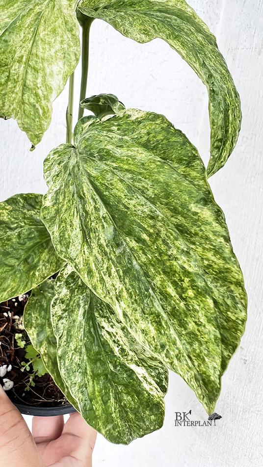 Type: Rare Amydrium with mint variegated patterns and unique spider-web markings on leaves